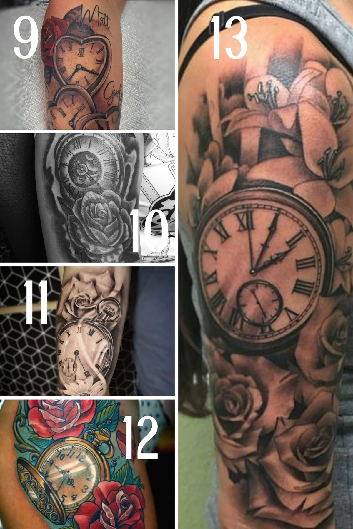 The presence or absence of hands in the clock and whether it is warped, distorted or realistically designed also adds to the symbolism of the clock tattoo. This glamorous clock tattoo design for men and women can speak to emotions like everlasting and presence. The black mixes easily with red touch revealing that bold look. Roman numeral 13 tattoo the number 13 is absolutely unique. Colored clock tattoos are often used to create a cheerful or uplifting image, while black and white or gray tones often represent a more serious message. 4 roman numerals clock tattoo:. Finding a tattoo design that you want inked on your skin forever is a process.