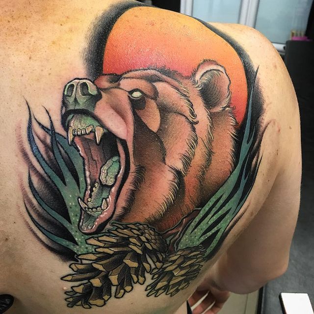 >>8.2k members in the traditionalflash community. Brown bear tattoo by brian povak. Neo traditional tattoo style first time appeared around the early 2000 s. Beautifully designed tattoos attract the attention of all generations, from teenagers to older ones. Angry, fierce, outrageous animal would symbolize strength, power, bravery, glory, being prepared to protect oneself and others. Bear tattoos for men are thought to symbolize nobility and strength.!